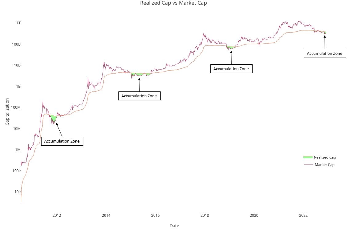 比特币市值与已实现市值注释K线走势图 来源:CryptoNoob/推特
