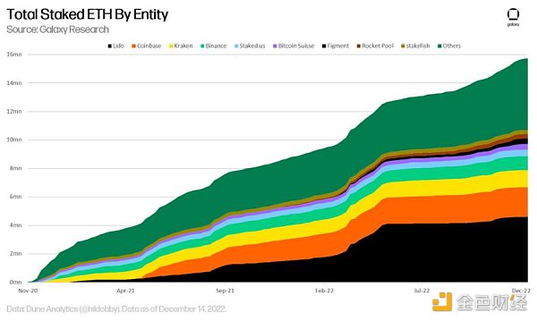 从交易所角度来看,通过向用户提供存款收益,提供押注服务是激励用户将资产长期储存在其平台上的一种简单方法。大多数质押池还为用户提供了低于32 ETH的质押能力,并为验证者技术设置中的故障提供了一定程度的保障。以太坊的第二大和第三大质押实体都是交易所。