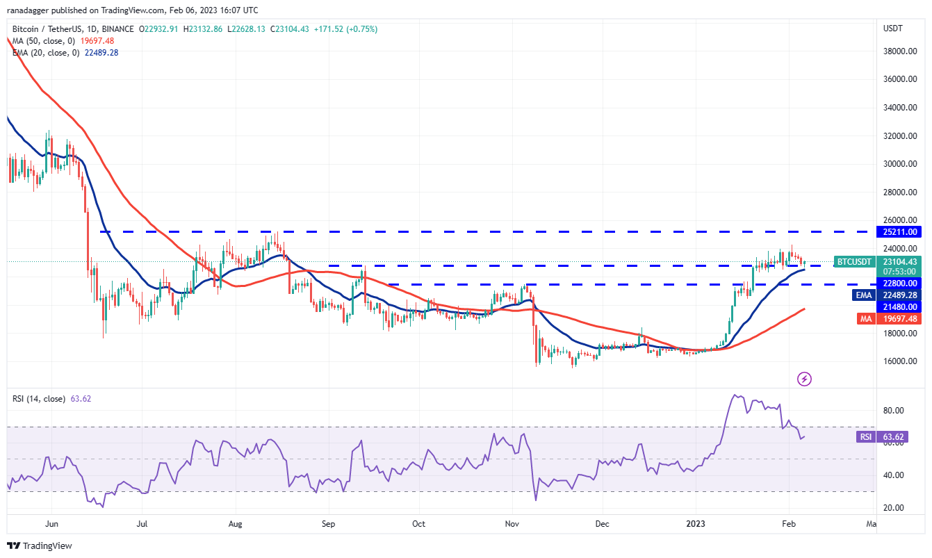 比特币已经回到 22,800 美元和 20 天均线(22,489 美元)之间的关键支撑区域。 如果多头想保持上涨趋势不变,这是多头需要保护的重要区域。