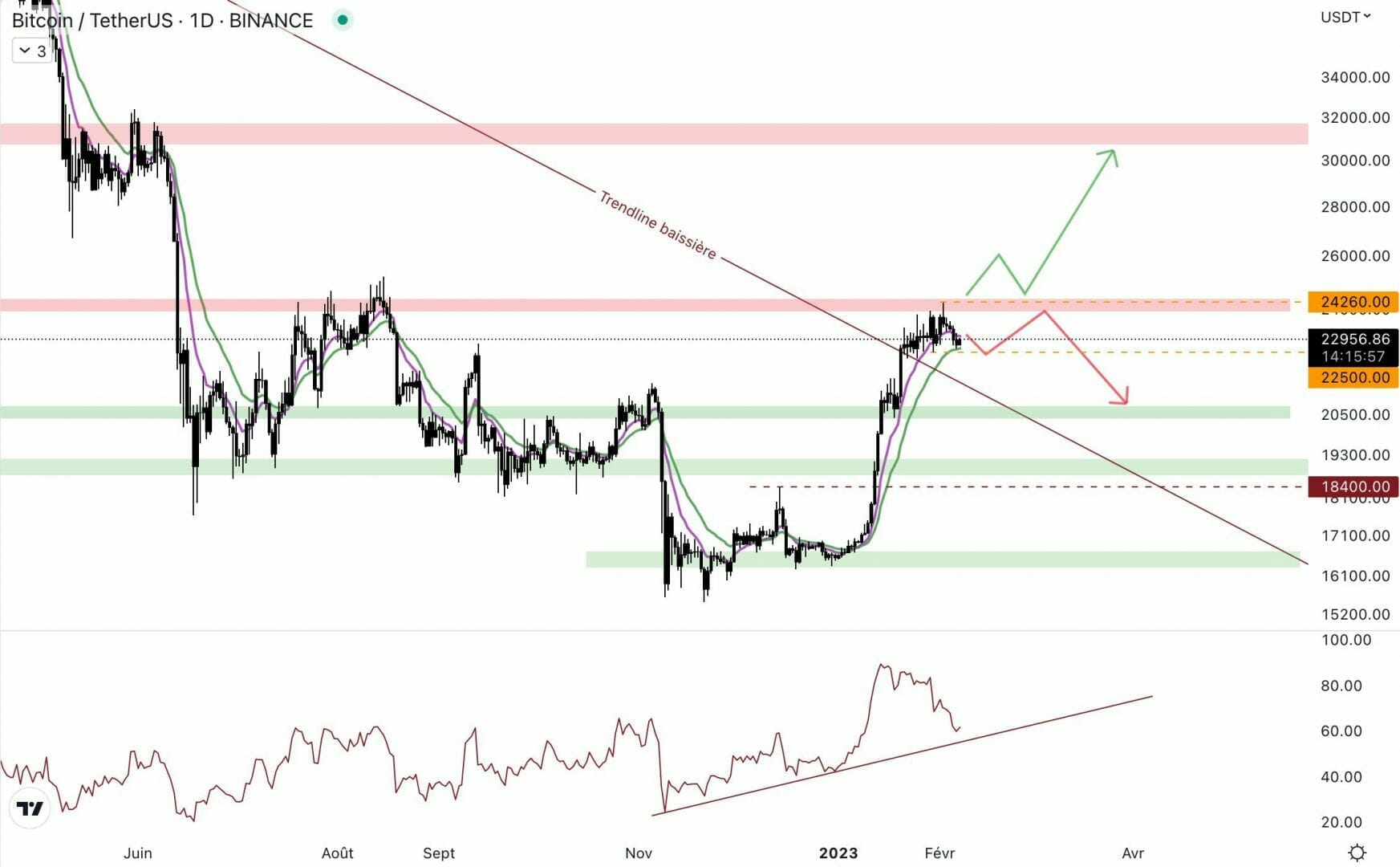 RSI 看涨,它继续标记底部和上涨顶部。 在经历了整个 2022 年的看跌势头之后,RSI 正在改变其趋势。