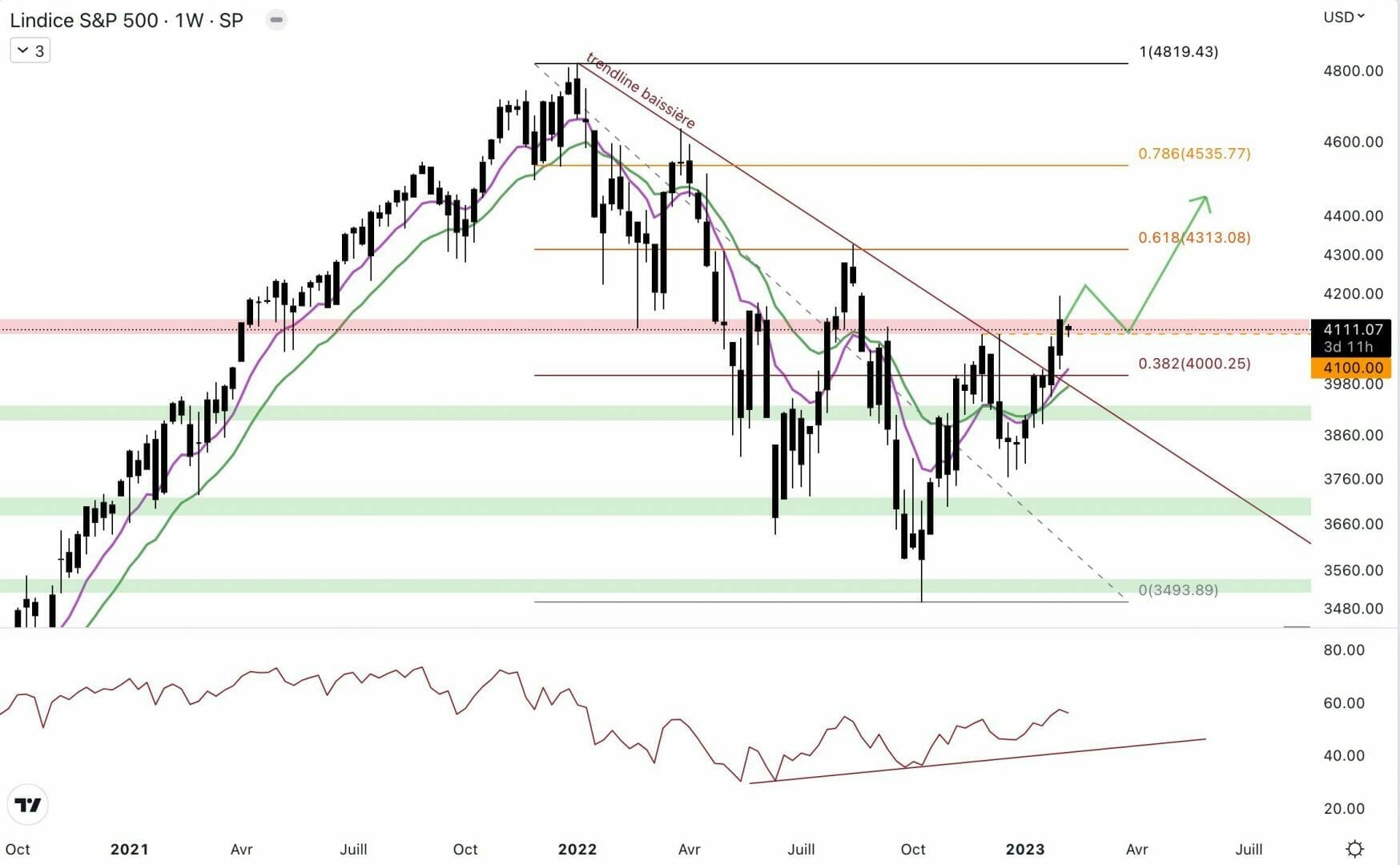 标准普尔 500 指数每周都会改变势头自收于 4,100 美元上方以来,标准普尔 500 指数改变了势头: