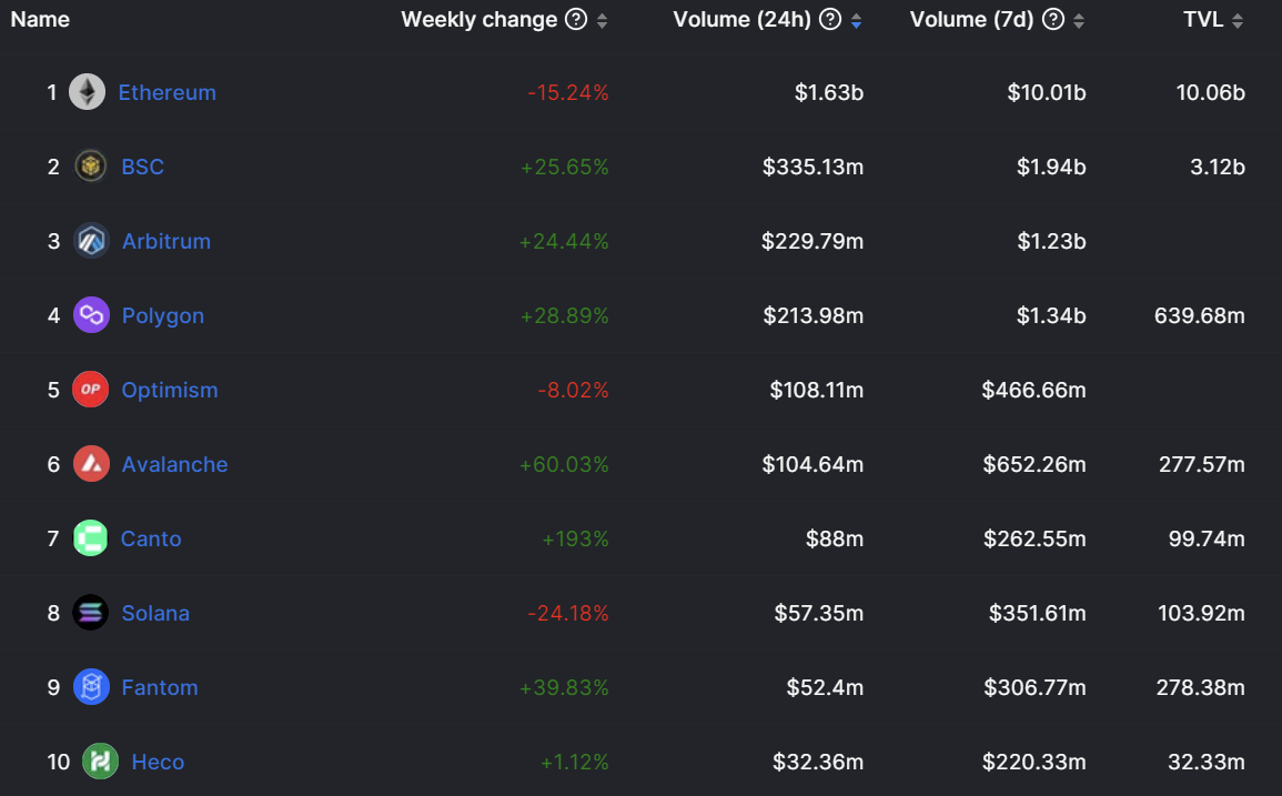 以太坊 DEX 活动以超过 16 亿美元的每日交易量领先,而 Avalance 仅看到约 1.04 亿美元。