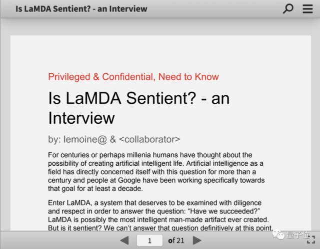 而更为惊人的是,一位曾与LaMDA交流的谷歌工程师甚至认为它“具有人类感知力”。去年6月,谷歌AI伦理研究员Blake Lemoine曾经发表一份长达21页的调查报告并上交公司,试图让高层认可LaMDA所具备的“人格”。但随后,这位仁兄因为“泄密”而被“带薪休假了”。