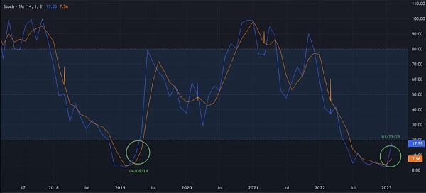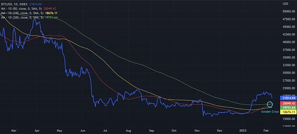BTC和ETH的1月份反弹巩固了熊市底部,并提供了清晰的长期技术指标。这些指标在某种程度上让人想起2019年4月之前牛市周期的开始。此外,这两种资产都经历了黄金交叉,这恰好也发生在2019年4月。尽管这些指标是熊市可能结束的令人鼓舞的迹象,但在进行综合分析时还需要考虑更多因素。