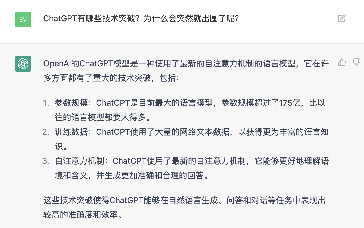 但她也指出,ChatGPT的“出圈”也有其必然。一方面,相比于目前市面上诸如Siri一类的对话式人工智能,能够真正接近人类的语言沟通水平,其语言表达能力、逻辑能力、学习能力的进步有目共睹。