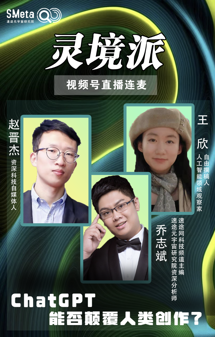 2月9日,由速途元宇宙研究院主办的直播访谈类栏目“灵境派”002期栏目正式上线。本期节目,围绕近期火爆的OpenAI发布的全新聊天机器人模型ChatGPT,邀请到了人工智能领域观察家、自由撰稿人王欣,以及资深科技自媒体人赵晋杰两位嘉宾,从多角度畅谈对于ChatGPT爆火这一事件的观点,展望人工智能行业的发展方向,并分享自己在生活与工作中与人工智能的不解之缘。