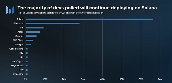 1、有大量开发人员选择在其他链上进行部署应用,尤其是以太坊,但接受调查的大多数(66%)开发人员只坚持使用 Solana。