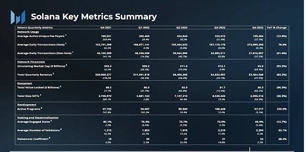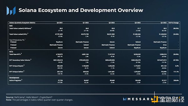 作为 2022 年的后续,本报告将深入探讨本季度的数据表现以及 Solana 继续克服挑战并在不利的市场条件下取得进展的定性证据(定性方面内容本文暂不展示,有兴趣的用户可阅读原文)。