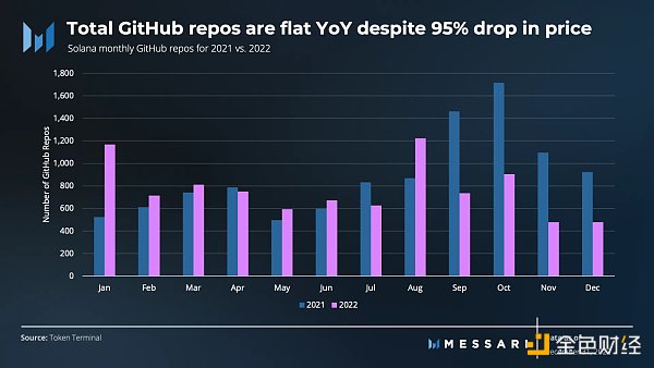 开发者活动在第四季度 FTX 破产之后,推特上充斥着 Solana 发展步履蹒跚的,Solana 核心开发人员的大规模外流正在进行中。谣言是假的,且主要是由 Token Terminal 的导致。