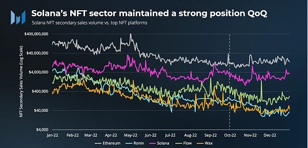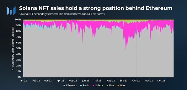 Solana 在 NFT 领域的战略和地位依然很有力,是在二级市场交易量方面其仅次于以太坊的第二大网络。