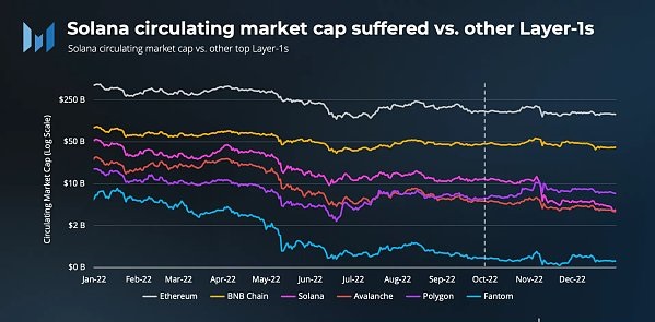 FTX 崩盘后,Solana 的价值受到的影响最大,其市值下降了 70%,但网络健康状况保持稳定。