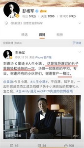 另外,此前还自夸文案一稿过的导演彭杨军,也删除了相关微博。