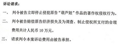 10W+大号自爆被“葫芦娃”起诉赔钱 卡通形象不能乱用