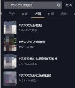 无独有偶,这两天刷抖音的时候,经常能刷到#武汉欢乐谷的蛤蟆#视频,该话题热度还挺高。