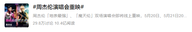 微博平台上,“周杰伦演唱会重映”话题累计阅读量超10亿 图源:微博截图