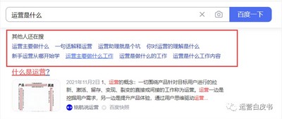 标题清洗可以使用步骤1中的百度联想词,可以直接挖掘联想词作为文章标题,另外一种是组合标题,也就是目前行业用到的A+A相关的方式,而在我分析了行业内这种组合方法后,我发现有意思的是,目前行业不少使用的是A+A下拉,很少使用A+A相关。我们举个例子,比如关键词"运营是什么",我组合出来的标题是运营是什么(运营主要做什么)