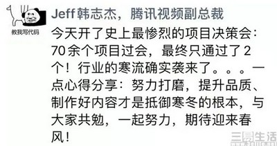 无独有偶,今年年初腾讯视频副总裁韩志杰曾在朋友圈发文称,“开了史上最惨烈的项目决策会”,70余个项目最终只通过了2个。而优酷剧集中心总经理谢颖也曾指出,“年前最后一次立项会”里,53个剧集最后只锁了1个IP。如此严格的项目审核筛选,在用户端最为直观的反映无疑就是“剧荒了”。