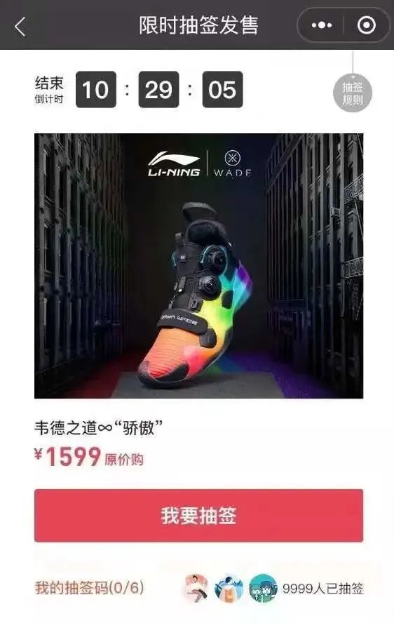 初尝甜头之后,李宁不断优化社交裂变玩法。2019年初,李宁联合体育明星韦德,发起“寻找韦德生日锦鲤”主题活动,引导用户邀请好友“祝福韦德生日”,并用礼包激励形式刺激购买。最终,这场活动的转化率达6%,首发IP商品售罄率达80%。