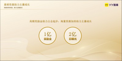 据悉,预计未来一年,YY直播将投入1亿元现金和每天2亿以上的曝光资源,用于扶持和培养新入驻的公会和主播。