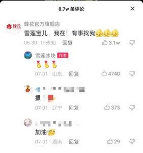 与此相同的,还有此次现身雪莲冰块作品评论区的蜂花。