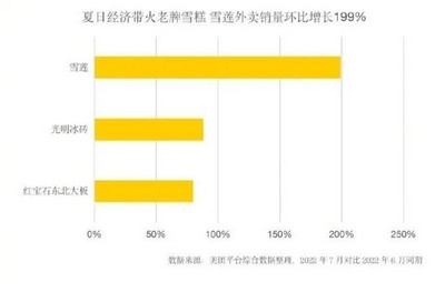 此外,新播场还发现,雪莲冰块在美团的外卖销量也得到了上涨。据美团数据显示,6月平价雪糕订单量突破百万单,甚至”超过了钟薛高,7月以来外卖平台销量暴涨199%。