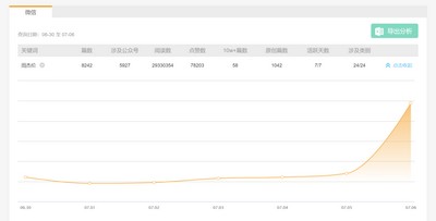 新榜数据显示,从7月6日至7月8日0点,微信内就有36篇相关话题的10万+文章诞生。