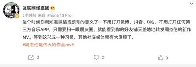 视频号虽然没有周杰伦的入驻,但因为腾讯音乐的版权加持、配合朋友圈的流量池,默默刷了波存在感。