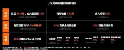 具体来看,各厂商所覆盖的受众在共性之上也有些许差异。例如从小米智能电视的日活达到2130万(截至2021年12月)、每周收看5.37天、有效观看时长达216分钟/天等数据看,用户粘性与活跃度也会显著影响广告投放效果,因此也是值得关注的受众价值。