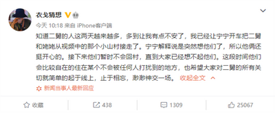 此前,作者曾公开发文称:视频每一个字都是真的,文案是他用了两个晚上的时间写出来的。现在知道二舅的人这两天越来越多,多到让我有点不安了,我已经让宁宁开车把二舅和姥姥从视频中的那个小山村接走了。