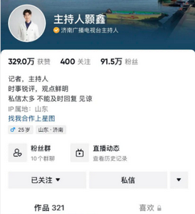 而yoyo和徐颢鑫是同一家电视台的两个分支,前者主做搞笑内容,后者也在yoyo账号出镜的同时,经营着自己的抖音号,发布一些严肃的新闻口播视频。