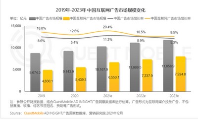 此外,中国互联网广告行业的规模在2021年的表现要优于2019年和2020年,据QM数据,预计2021年行业规模为6550.1亿元人民币,规模高于此前两年。2021年,预计行业增速为20.4%,而2019年、2020年的增速分别为18%、12.6%。