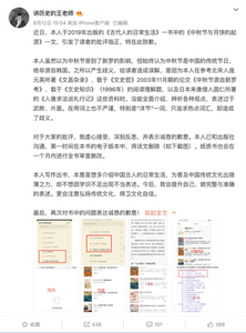 昨天下午,讲历史的王老师”在社交网络上对此进行了公开道歉,称其虽然以为中秋节受到了新罗的影响,但始终认为中秋节是中国的传统节日,绝非源自韩国。