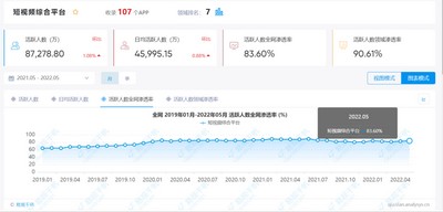 根据易观千帆数据,2022年5月,短视频领域,总体月活用户规模约8.7亿,全网渗透率83.6%。