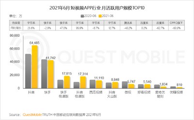 但短视频领域却一直是双寡头格局。据艾媒数据中心显示,直到2020年7月,抖音、快手(01024.HK)还垄断了8.4亿月活,其他平台用户量级均未达1亿。