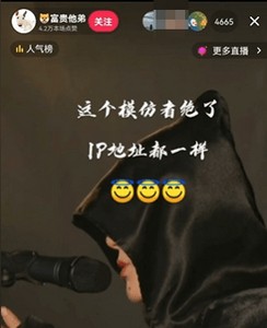 一个名叫“富贵他弟”的博主,从头像到名称,再到直播间的穿着,都十分像富贵,引来几十万人观看。