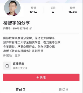 从他在各大平台上的发言能发现,他的确在借助舆论,为自己的事业做一次盛大的营销推广,抖音现在已经涨到14.4万粉丝。