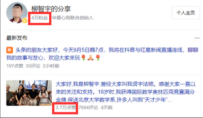 如今的柳智宇,从出家僧人“贤宇法师”切换到新身份——心理辅导师,他带着与自己有关的热搜话题,在微博宣传;入驻头条号,首篇短文获赞3.7万;并注册抖音,一夜涨粉8万,现在全网粉丝涨了近20万。