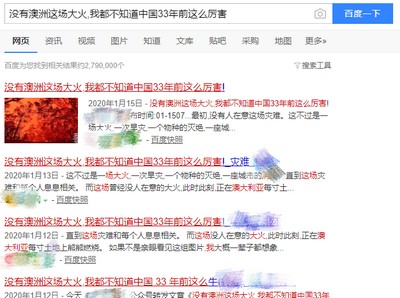 所以一些爆文往往标题中,就给读者提供了一种带有相对偏见的答案。例如**青年曾经的爆文《没有澳洲这场大火,我都不知道中国33年前这么厉害》,是不是这种味儿?(已被封禁)