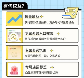 专属咨询氛围,助力交易达成;专属店招标签,凸显商家客服咚咚服务优势。