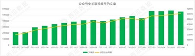 据西瓜数据统计,2021年1月至2022年6月公众号中关联视频号的文章数量呈逐月上升趋势,视频化趋势越来越明显。