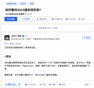 在知乎“如何看待2023届秋招形势?”的问题下,不少答主分享了深度参与此次秋招季的经历和感受。有企业校招HR就招聘需求帮助网友们考量判断,也有正在亲历秋招的在读学生就自身求职情况给出建议,而综合各方回答可以看出,在不确定性增强的时代背景下,工作与求职也进入了困难模式。