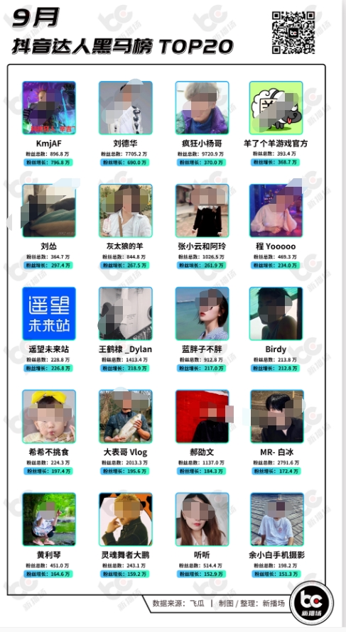 通过飞瓜数据,新播场盘点了抖音9月的涨粉及热门视频表现情况,推出“抖音9月黑马榜”。
