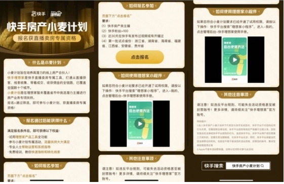 快手理想家发起“快手房产小麦计划” 每月超1亿流量资源扶持