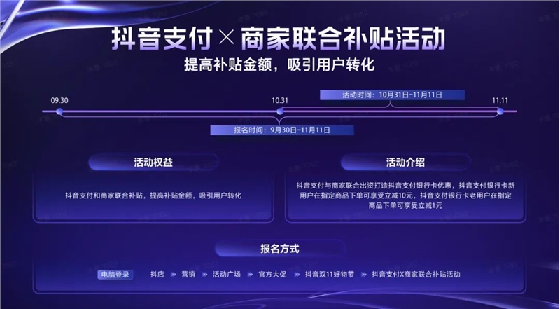 抖音电商强调,本次抖音双11大促将通过中心场与内容场的协同,用亿级丰沛流量、大体量激励补贴、高吸引力丰富玩法,帮助商家在一年一度的业绩冲刺时刻,发挥全域生意增长力,带动生意聚势突围、实现生意全域爆发。