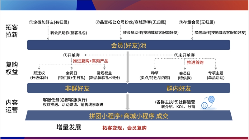 朱爱国:第一层是拓客拉新链路,漏到有会员关系的流量池内,主要有三个链路: