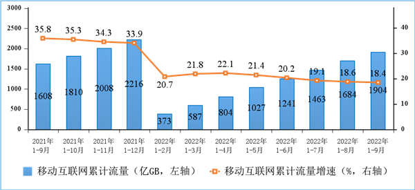 具体来说,前三季度,移动互联网累计流量达1904亿GB,同比增长18.4%。截至9月末,移动互联网用户数达14.62亿户,比上年末净增4597万户。9月当月户均移动互联网接入流量(DOU)达到15.01GB/户月,同比增长12.4%,比上年底高0.29GB/户月。