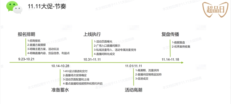 视频号双十一时间节奏 图源:视频号双11招商文档