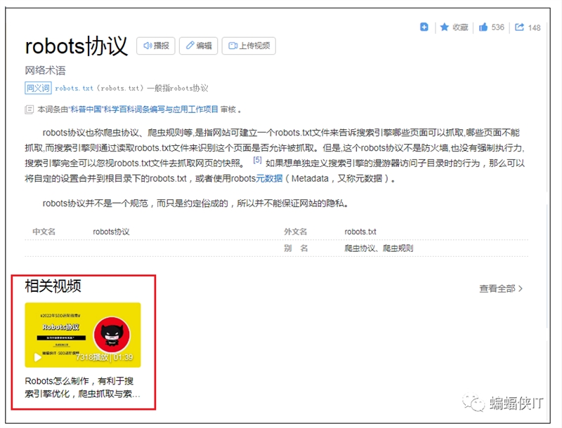 当然,你搜索robots.txt进入词条之后,同样会跳转到这个目标页面。