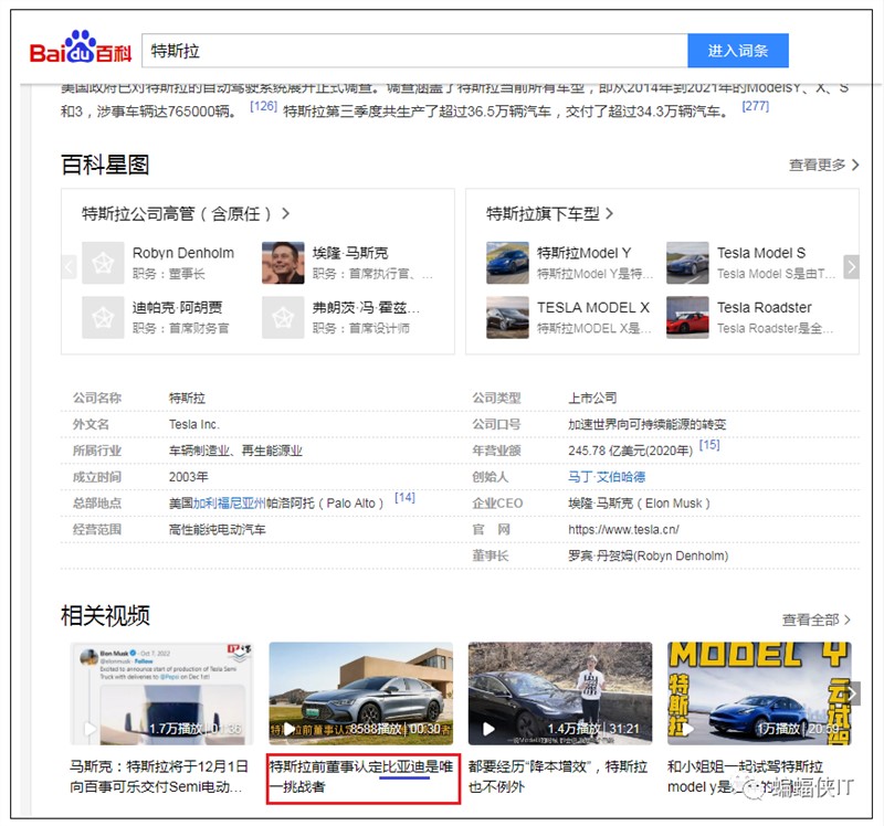 比如:特斯拉的百科词条