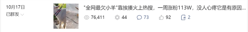 最近有一篇很神奇的文章,10月17号发的,写一只小羊“烤串”的,刚发布三天内已经很惊喜, 阅读量是2.5万。